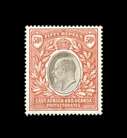 2072 og 16 image#16, 1903 50R Orange brown and black, a particularly handsome and fresh mint single of this key high value, lovely colors on bright paper, full even perforations all around, and well centered also, o.g., lightly hinged, very fine and choice; signed Rendon (S.G. #16; £1,300). (Image) 1,500.00