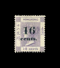 2104 og 29 image#29, 1876 "16/cents." surcharge on 18c Lilac, a very scarce mint example of this surcharge, color is strong with sharp black overprint, o.g. a bit disturbed from hinging, fine and a difficult stamp to acquire mint; signed Rendon (S.G. #20; £2,250). (Image) 2,250.00