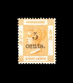 2106 og 31 image#31, 1880 "5/cents." surcharge on 8c Orange, mint single with lovely brilliant color, slightly disturbed o.g., fine; a difficult stamp mint; signed Rendon (S.G. #23; £900). (Image) 900.00