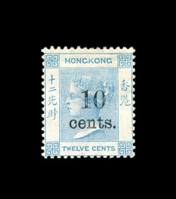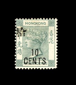 2116 og 69a image#69a, 1898 "10 Cents" surcharge on 30c gray green, with large Chinese character, fresh mint single, well struck overprints, quite well centered for this, good color, o.g., h.r., very fine (S.G. #55c; £900). (Image) 1,250.00