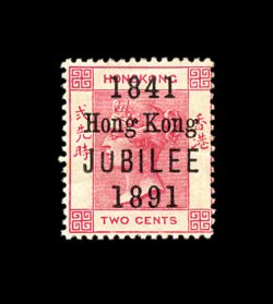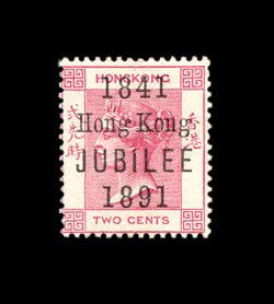 2113 og 66 image#66, 1891 2c Rose, with "1841 Hong Kong Jubilee 1891" overprint, fresh mint single, pretty color on bright white paper, o.g., h.r., very fine (S.G. #51; £425). (Image) 550.00
