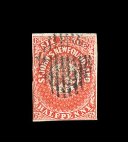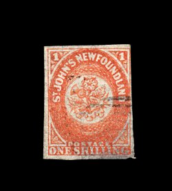 2169 O 7 image#7, 1857 6 1/2p Scarlet vermilion, unusually fresh used single with black oval grid cancel, intense brilliant color of the first issue, and a sharp highly detailed impression, margins are just clear to ample, a fine example of a scarce value; 1991 Brandon certificate (S.G. #7; £2,500, Unitrade C$2,750.00). (Image) 2,500.00