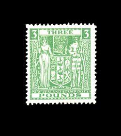 2175 og AR65 var. image#AR65 var., 1937 £3 Green, the later printing on vertically meshed paper, attractive apple green color on bright white chalky paper, o.g., lightly hinged, very fine (S.G. #F183; £600). (Image) 275.00+