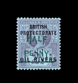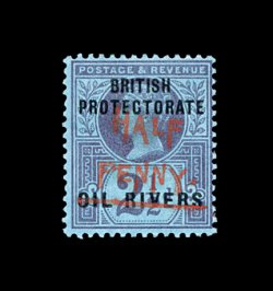 2176 og 13 image#13, 1893 "Half/Penny" Green surcharge on 2 1/2p Violet on blue, strong colors, o.g., h.r., fresh and fine; signed Rendon (S.G. #27; £375). (Image) 375.00