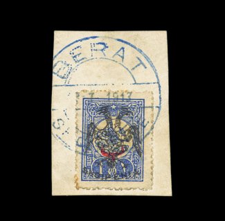 2304 O 15 image#15, 1913 1pi Bright blue, well centered single tied to piece by blue Berat c.d.s., fresh color, a very fine example of this seldom offered stamp; signed Rendon (Michel #14; €1,700). (Image) 800.00
