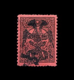 2305 O 18 image#18, 1913 1pi Black on deep rose, well centered, fresh color, lightly cancelled, very fine; a rare stamp, with only 345 printed; signed Rendon (Michel #15; €2,600). (Image) 1,250.00