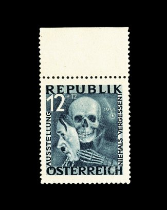 2317 nh Mi. #VI-VII imageMichel #VI-VII, 1946 5g+3g and 12g+12g Death Mask cplt., both are top sheet-margin singles, well centered and fresh, o.g., n.h. (#VI with small spot on gum), choice very fine; a scarce and seldom offered set. (Image) Michel Euro €2,200