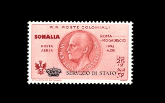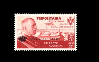 2540 og CBO1 image#CBO1, 1934 25L +2L Air post, with "Servizio di Stato" overprint, choice centering, o.g., fresh and extremely fine; an attractive example of this very scarce air post stamp; signed Elliot. (Image) 1,250.00