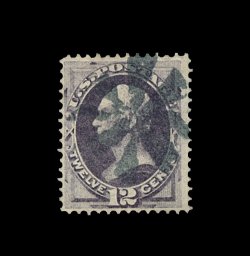 1161 O 140 image#140, 12c Dull violet with grill, an exceedingly choice used example of this rare grilled stamp, possessing extravagantly large margins which are most uncharacteristic of this stamp, quite well centered as well, strong color, lightly cancelled, extremely fine overall; not often encountered in this premium condition; 2000 PF certificate. (Image) 3,000.00