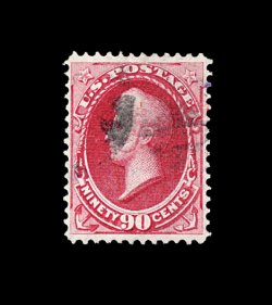 1166 O 144 image#144, 90c Carmine with grill, a most attractive used single of this very scarce high value, possessing bright vibrant color and a razor-sharp impression on fresh white paper, wonderfully well centered as well, uncommonly light cancel, extremely fine; a lovely example of a scarce and difficult used stamp; 1999 PF certificate. (Image) 1,800.00