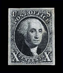 13 og 4 image#4, 10c Black reproduction, without gum as issued, four large to very large margins, deep rich color and a crisp impression, choice very fine; 1980 PF certificate. (Image) $900.00