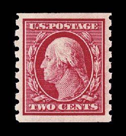 344 nh 393 image#393, 2c Carmine coil, perf. 8 1/2 vert., highly select mint single, possessing unusually large and well balanced margins all around, brilliantly fresh and bright, sumptuously rich color, o.g, n.h., extremely fine; a gem coil single; 1996 PF certificate for a pair, this being the left stamp. (Image) $100.00