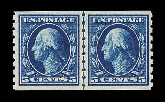 350 og 396 image#396, 5c Blue coil, perf. 8 1/2 vert., guide line pair, well centered and margined, deep luxuriant color and impression, o.g., l.h., choice very fine; 1989 PF certificate. (Image) $400.00