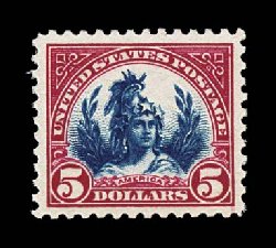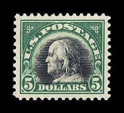 421 nh 524 image#524, $5.00 Deep green and black, a superb mint example that would please even the most fastidious collector, being perfectly centered amid lavishly large margins, gloriously intense colors, immaculate o.g. without a single gum bend or skip, n.h., an extremely fine gem in every regard; 1995 PF certificate. (Image) $400.00
