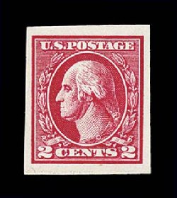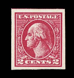 422 nh 533 image#533, 2c Carmine offset imperforate, Ty. V, highly select mint single, featuring exceptionally large margins all around, plus its color is particularly deep and vibrant, pristine o.g., n.h., an extremely fine gem; 1990 PF certificate. (Image) $210.00