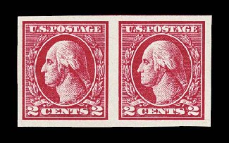 423 nh 533 image#533, 2c Carmine offset imperforate, Ty. V, pristine horizontal pair, marvelously bright and fresh, deep rich color, large margins all around, o.g., n.h., extremely fine. (Image) $450.00