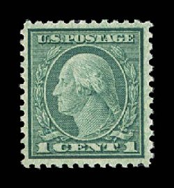 428 nh 545 image#545, 1c Green coil waste, perf. 11, an uncommonly choice mint example of this surprisingly difficult stamp, being particularly well centered amid uncharacteristically large margins, deep rich color and a crisp impression, pristine o.g., n.h., extremely fine; 2001 PF certificate. (Image) $425.00
