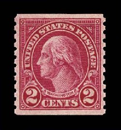 434 nh 599A image#599A, 2c Carmine coil, Ty. II, perf. 10 vert., premium quality mint single, exceptionally well centered and margined, intensely rich color, unblemished o.g., n.h., extremely fine; 2001 PF certificate. (Image) $225.00