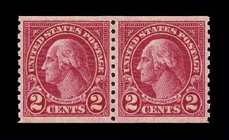 435 nh 599A image#599A, 2c Carmine coil, Ty. II, perf. 10 vert., gem mint pair, flawlessly centered, gloriously intense color, o.g., n.h., extremely fine; a pair for the perfectionist; 1978 PF certificate. (Image) $475.00