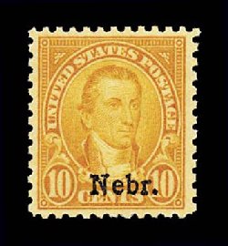 439 nh 669-79 image#669-79, 1c-10c "Nebr." ovpts. cplt., an especially bright and fresh set, nearly all quite well centered, o.g., n.h., very fine; a perfect companion set to the previous lot. (Image) $579.25