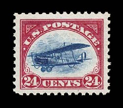 442 nh C3 image#C3, 24c Carmine rose and blue, flawlessly centered amid very wide margins, brilliant colors, o.g., n.h., extremely fine gem; an especially handsome stamp. (Image) $150.00