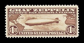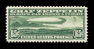 445 nh C13-15 image#C13-15, 65c-$2.60 Graf Zeppelins cplt., an exceptionally choice mint set, each stamp being extraordinarily well centered within large to extra-large margins, strong rich colors, fresh o.g., n.h., extremely fine; an especially handsome set. (imagea) (imageb) (Image) $2,100.00