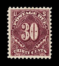 505 nh J66a image#J66a, 30c Deep claret, "post office" fresh, well centered within large margins, intensely deep color of this elusive shade and crisp impression, pristine o.g., n.h., choice very fine. (Image) $175.00
