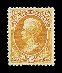 520 og O11 image#O11, 2c Executive, an extraordinarily choice mint example in a quality rarely seen, being perfectly centered within considerably larger margins than usually encountered on this value or any other of the Executive series, even its color is particularly intense, full o.g., extremely fine; 1992 PF certificate. (Image) $500.00