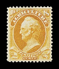 517 og O8 image#O8, 24c Agriculture, wonderfully well centered, sumptuously rich color and impression, full o.g., extremely fine; a handsome and scarce stamp in this select quality; 1997 PF certificate. (Image) $350.00