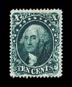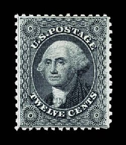 56 og 44 image#44, 12c Greenish black reprint, without gum as issued, possessing essentially perfect centering which is next to impossible to find on this value, extraordinarily intense color and impression, fully intact and even perforations which is also a most unusual trait, an extremely fine gem; one of the very finest of the 479 issued; a condition rarity for the most demanding condition conscious collector; 1985 PF certificate. (Image) $3,250.00