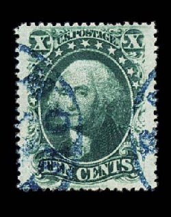 43 O 32 image#32, 10c Green, Ty. II, used, flawlessly centered amid extravagantly large margins which are most uncharacteristic of this stamp, rich color and impression, light central strike of a large Boston "Paid" circular grid cancel, extremely fine gem. (Image) $320.00