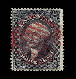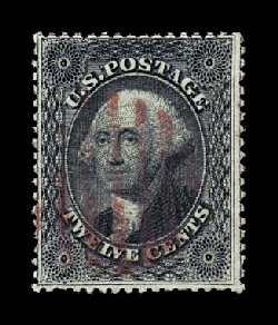47 O 36b var. image#36b var., 12c Black, plate III, double frame line at left variety, a breathtakingly beautiful used example of a stamp that is next to impossible to find in true gem quality, possessing perfect centering amid uncharacteristically large margins, deep rich color and an incredibly detailed impression which displays the double frame line at left exceedingly well, and most impressive of all is its spectacular cancellation, which is an outstanding central strike of a vivid red rimless grid, extremely fine; a superb used stamp for the finest collection; 1985 and 1991 PF certificates; ex-Morris. (Image) $235.00