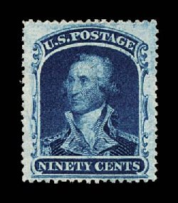 51 ng 39 image#39, 90c Blue, unused, unusually wide margins and being exceptionally well centered within them, deep luxuriant color, extremely fine; 1992 PF certificate. (Image) $1,300.00