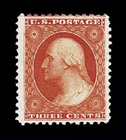 53 og 41 image#41, 3c Scarlet reprint, without gum as issued, a phenomenal example of this notoriously difficult reprint rarity, being in a condition which unquestionably places it among the very finest in existence, as this stamp boasts the most enormous margins we have ever seen on this particular value and, just as remarkable, is the fact that it is perfectly centered within these immense borders, even its color is quite out of the ordinary, as it is intensely rich and vibrant, with a prooflike impression on brilliantly white paper, superb; we believe, of the 479 issued of this value, that this particular copy ranks among the top two to three available; a spectacular stamp destined to realize a record price; 1968 and 1998 PF certificates. (Image) $3,250.00