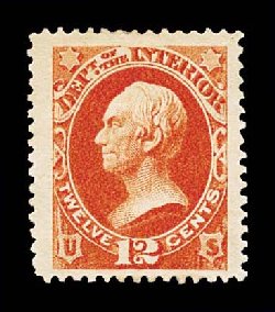 582 og O101 image#O101, 12c Interior, on soft porous paper, a magnificent jumbo example in a quality rarely encountered, fabulously fresh, with truly radiant color and impression on immaculate paper, extraordinarily well centered within absolutely huge margins, full o.g., lightly hinged, extremely fine; an exceedingly difficult stamp to find both so large and so choice; 1999 PF certificate. (Image) $190.00
