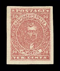 598 og 5 var. image#5 var., 10c Deep rose, highly select and rare mint example, featuring four large to extra-large margins, strong fresh color on bright paper, plus full clean o.g. with just a very faint natural gum wrinkle, lightly hinged, extremely fine; seldom encountered in this premium condition and still retaining its full original gum; clear 1985 PF certificate specifying the deep rose shade. (Image) $1,300.00