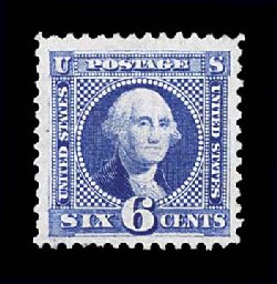 141 ng 126 image#126, 6c Blue re-issue, a wonderfully choice unused example, boasting outstanding centering within lavishly large margins, both being attributes not often encountered on this value, bright fresh color and a crisp impression on immaculate paper, extremely fine and exceptionally handsome; only 2,226 issued; 1992 PF certificate. (Image) $1,050.00