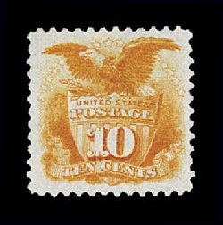 142 ng 127 image#127, 10c Yellow re-issue, premium quality unused example, featuring striking intense and vivid color, strong detailed impression on fresh paper, extraordinarily well centered within very large margins, extremely fine; a stamp with exceptional eye appeal; only 1,947 issued; 1992 PF certificate. (Image) $1,150.00