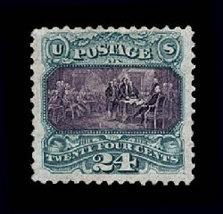 145 ng 130 image#130, 24c Green and violet re-issue, unused, with a trace of o.g., rich colors and crisp impressions, rather well centered, very fine; only 2,091 issued; 1992 PSE certificate. (Image) $1,300.00