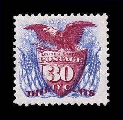 146 ng 131 image#131, 30c Blue and carmine re-issue, brilliantly fresh unused example, possessing exceptionally rich colors and well defined impressions on particularly bright paper, well centered within large margins, an extremely fine and handsome example of this rare stamp; only 1,535 issued; 1991 PF certificate. (Image) $1,700.00