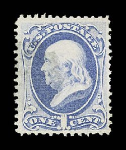 159 og 145 image#145, 1c Ultramarine, especially fresh mint single, bright color, well centered, full clean o.g., lightly hinged, very fine and choice; 1992 PF certificate. (Image) $600.00