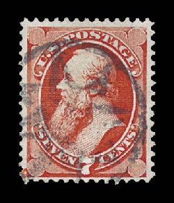 152 O 138 image#138, 7c Vermilion with grill, remarkably handsome used example with a fancy geometric NYFM cancel, unusually well centered within wide even margins, and surrounded by full even perforations, vivid deep color, nearly complete and easily seen grill impression, extremely fine; choice used example; 1993 PF certificate. (Image) $475.00