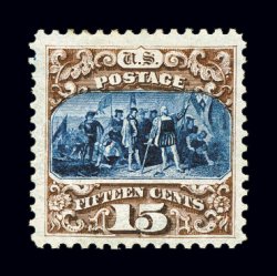 217 og 129 image#129, 15c Brown and blue re-issue, Ty. III, well centered within unusually large margins, sumptuously rich colors, full original gum, lightly hinged, very fine and choice; only 1,981 issued; 1985 PF certificate. (Image) $1,900.00