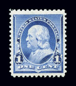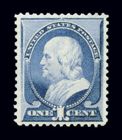 261 nh 212 image#212, 1c Ultramarine, a pristine mint single that possesses unusually rich luxuriant color and a crisp impression on fresh paper, excellent centering within large margins, immaculate o.g., never hinged, extremely fine; a lovely gem; 1989 and 2002 PF certificates. (Image) $325.00