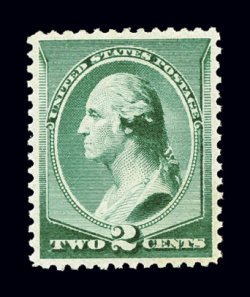 263 nh 213 image#213, 2c Green, extraordinarily well centered within large margins, brilliantly fresh color on bright paper, immaculate o.g., never hinged, extremely fine gem; 2004 PF certificate and a 2005 PSE certificate (XF 90); ex-Jarrett. (Image) $140.00