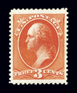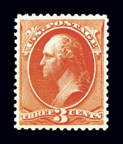 265 nh 214 image#214, 3c Vermilion, incredibly bright and fresh, with rich vibrant color on pristine paper, outstanding centering, immaculate o.g., never hinged, extremely fine gem; 1993 PF certificate and a 2005 PSE certificate (XF 90); ex-Jarrett. (Image) $225.00