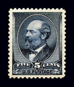 268 og 216 image#216, 5c Indigo, a fabulous mint example that is not only in gem quality, but it also possesses the most intense indigo shade we have ever seen, with truly prooflike color and impression, perfectly centered as well, with extravagantly large and balanced margins all around, immaculate o.g., just the faintest suggestion of a hinged mark, truly a superb stamp; 1994 PF certificate. (Image) $275.00