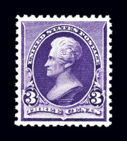 279 nh 221 image#221, 3c Purple, particularly handsome mint single, with large and well balanced margins all around, strikingly intense color, full and even perforations on all four sides, pristine o.g., never hinged, extremely fine; 2004 PF certificate. (Image) $225.00