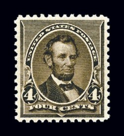 280 nh 222 image#222, 4c Dark brown, incredibly choice mint single, extraordinarily well centered within unusually large margins, deep rich color and impression, pristine o.g. without a single gum bend or skip, never hinged, an extremely fine gem; 2000 PF certificate and a 2005 PSE certificate (XF 90); ex-McCarthy, Jarrett. (Image) $290.00