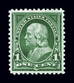 362 nh 279 image#279, 1c Deep green, premium mint example, extraordinarily well centered, intense color and impression, o.g., n.h., extremely fine; a pristine little gem; 2005 PSE certificate (XF 90); ex-Jarrett. (Image) $22.00